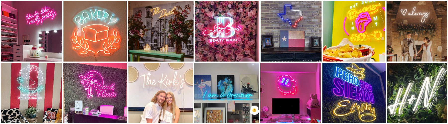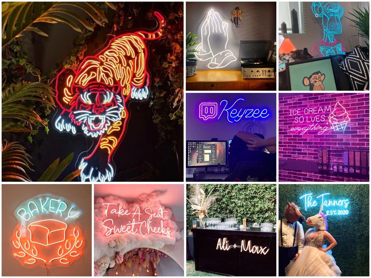 Popular in the 20th century, neon light signs are making a serious comeback thanks to a new, safer, more energy efficient and affordable material - LED neon flex. While vintage neon signs used glass neon tubes, modern neon is allowing a new generation to enjoy a high quality neon experience with a greater range of options while costing significantly less!Thanks to the affordability, energy efficiency, durability and safety of neon LED products, you can now buy neon LED signs and wall decor for a huge variety of uses. Add a stunning addition to your wedding party, create a neon word sign for bedroom or home decor, get a custom personalized name sign for the kids room, add a unique touch with neon bar signs, a neon sculpture, or get a customized neon sign for just about any purpose.